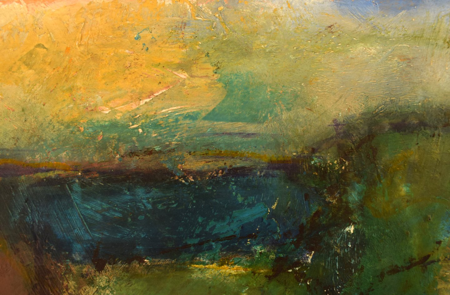 POUL K. JÖRGENSEN. Svensk kunstner. Olie på plade. Modernistisk landskab med hus i forgrunden. Dateret 1978. Signeret. I flot stand. Måler: 45 x 30 cm.