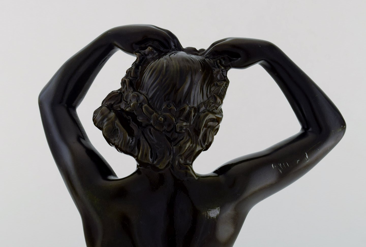 Asta Lilbæk for Just Andersen. Sjælden skulptur. Stor art deco nøgenmodel i diskometal. Modelnummer: D2336.
