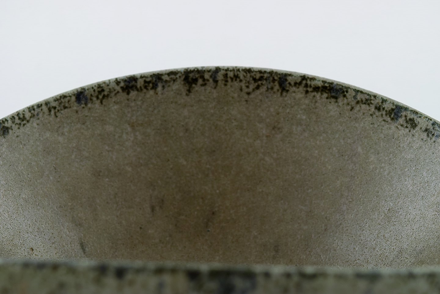 Arne Bang. Sjælden og tidlig skål i glaseret keramik. Modelnummer 7B. Smuk glasur i grågrønne nuancer. Ca. 1930.