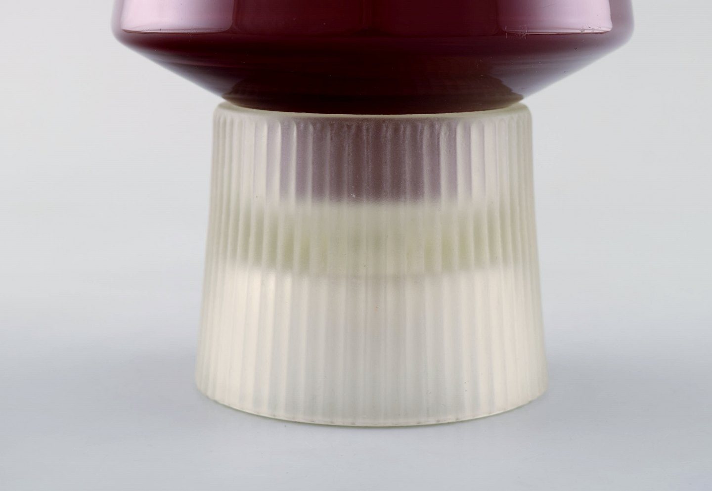 Per Lütken for Holmegaard. Et par sjældne hyggelamper til stearinlys i rødt og klart kunstglas. Designet i 1958.