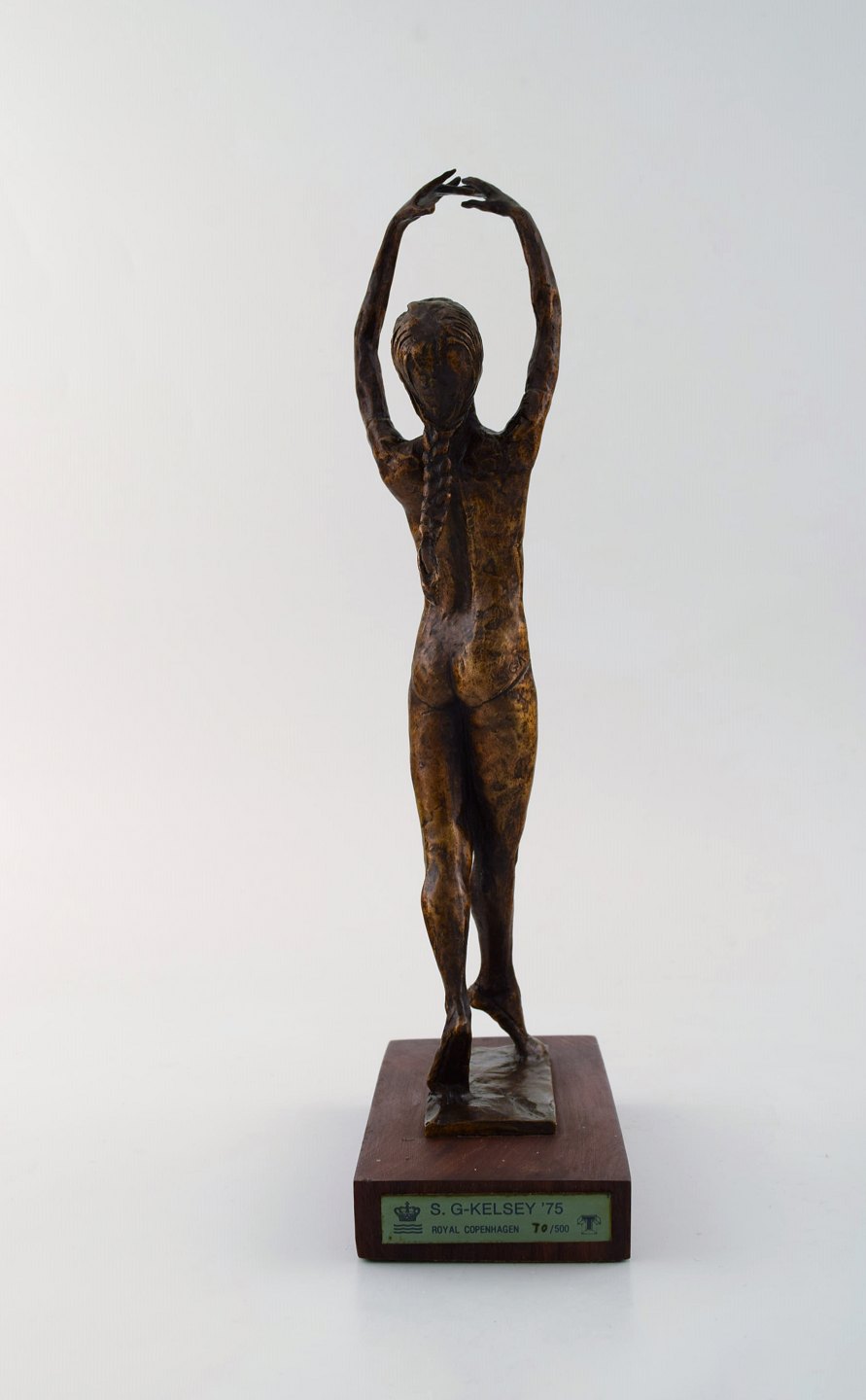 S.G-Kelsey for Royal Copenhagen. Bronze figur i form af dansende balletpige. Dateret 1975. Måler: 29 x 13 cm. I flot stand. Plakette på træsokkel med signatur. Nummereret: 70/500.