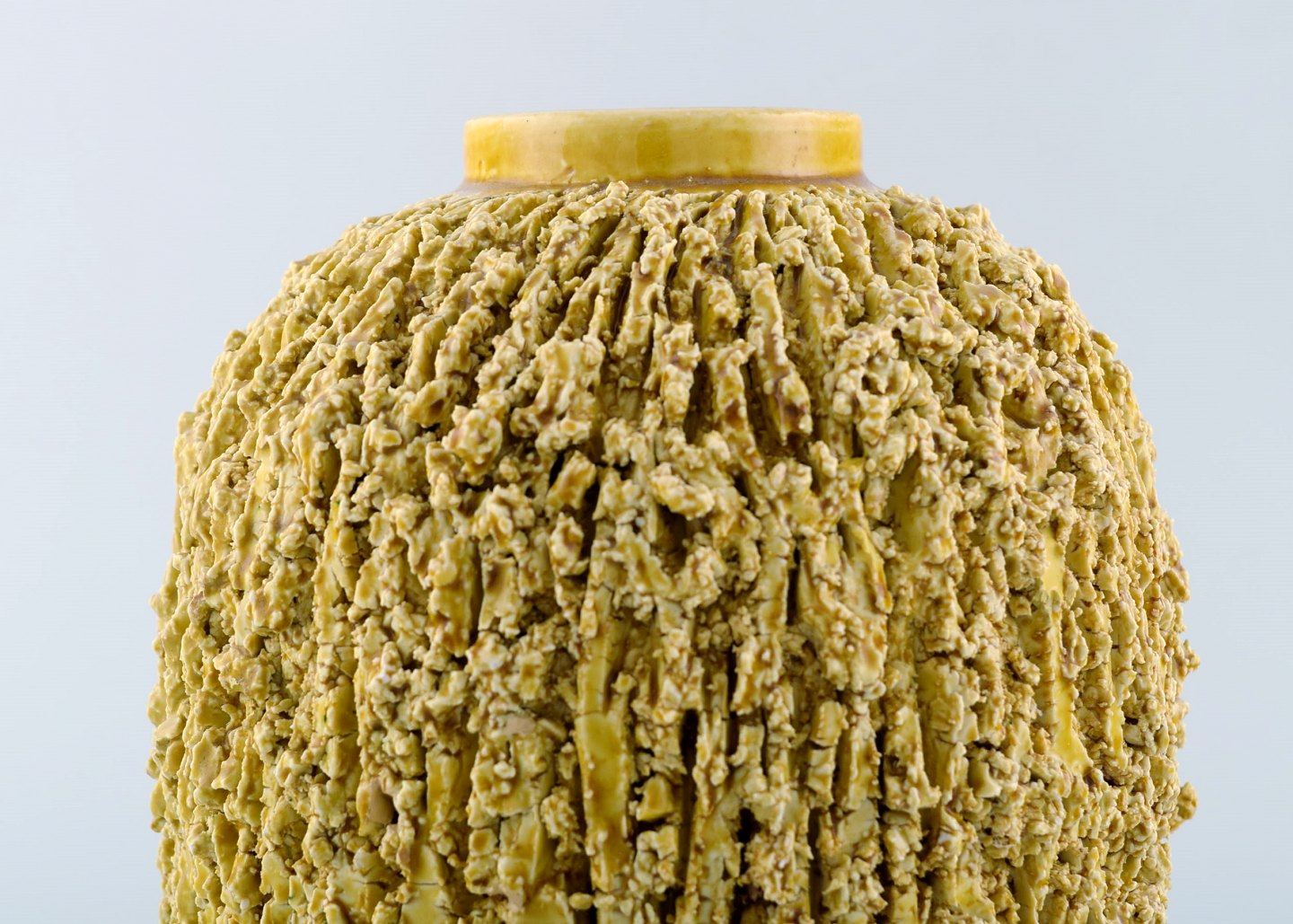 Gunnar Nylund for Rörstrand / Rorstrand. "Chamotte" vase in mustard yellow glaze. 1950's. Measures: 21.5 x 17.5 cm. (Largest model) Stamped. In very good condition.