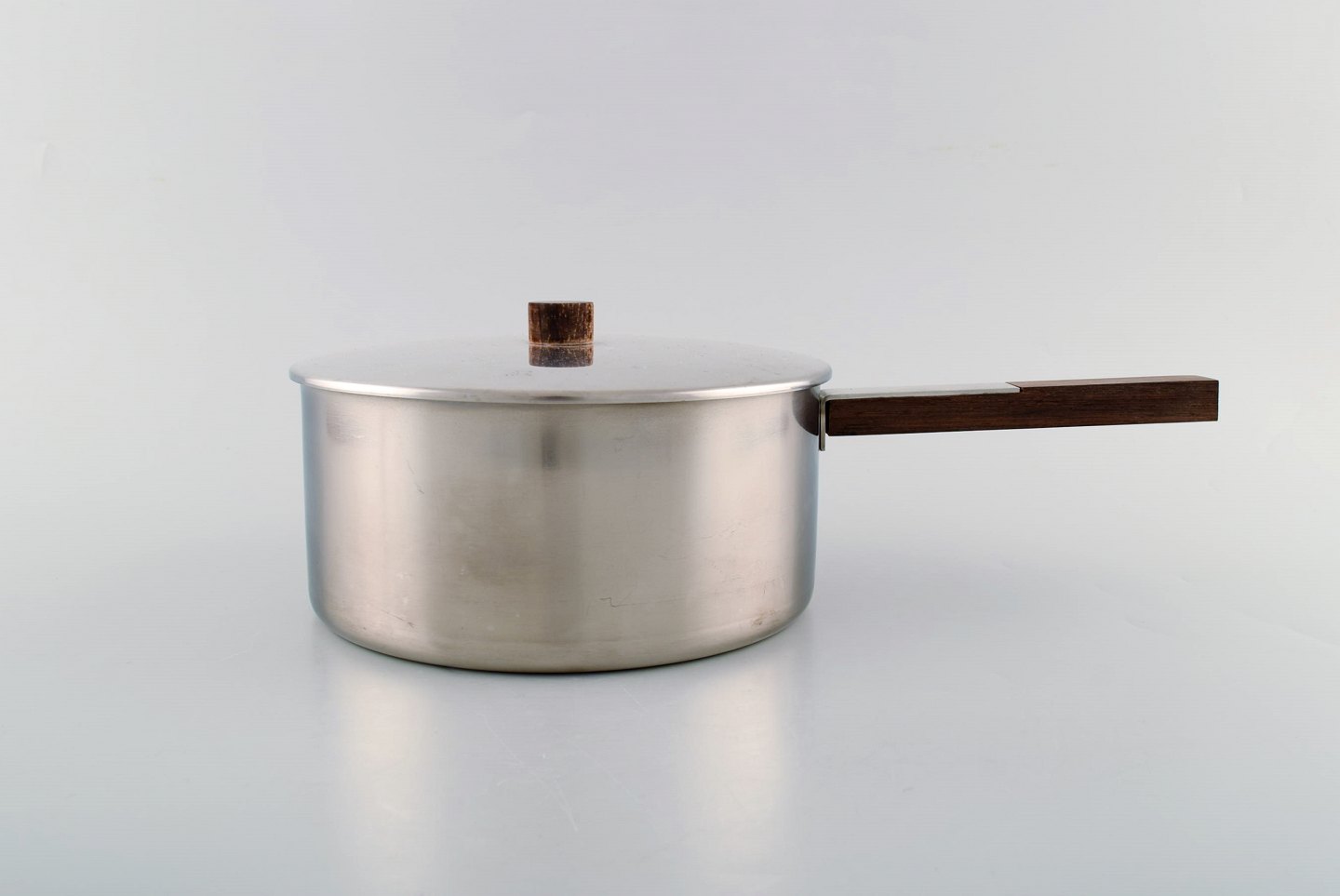 Arne Jacobsen for Stelton. "Cylinda Line" fondue set in stainless steel and teak with nine spears. 1970's. Measures: 21 x 19 cm (without handle). The spears measure: 28.5 cm. In very good condition. Stamped.