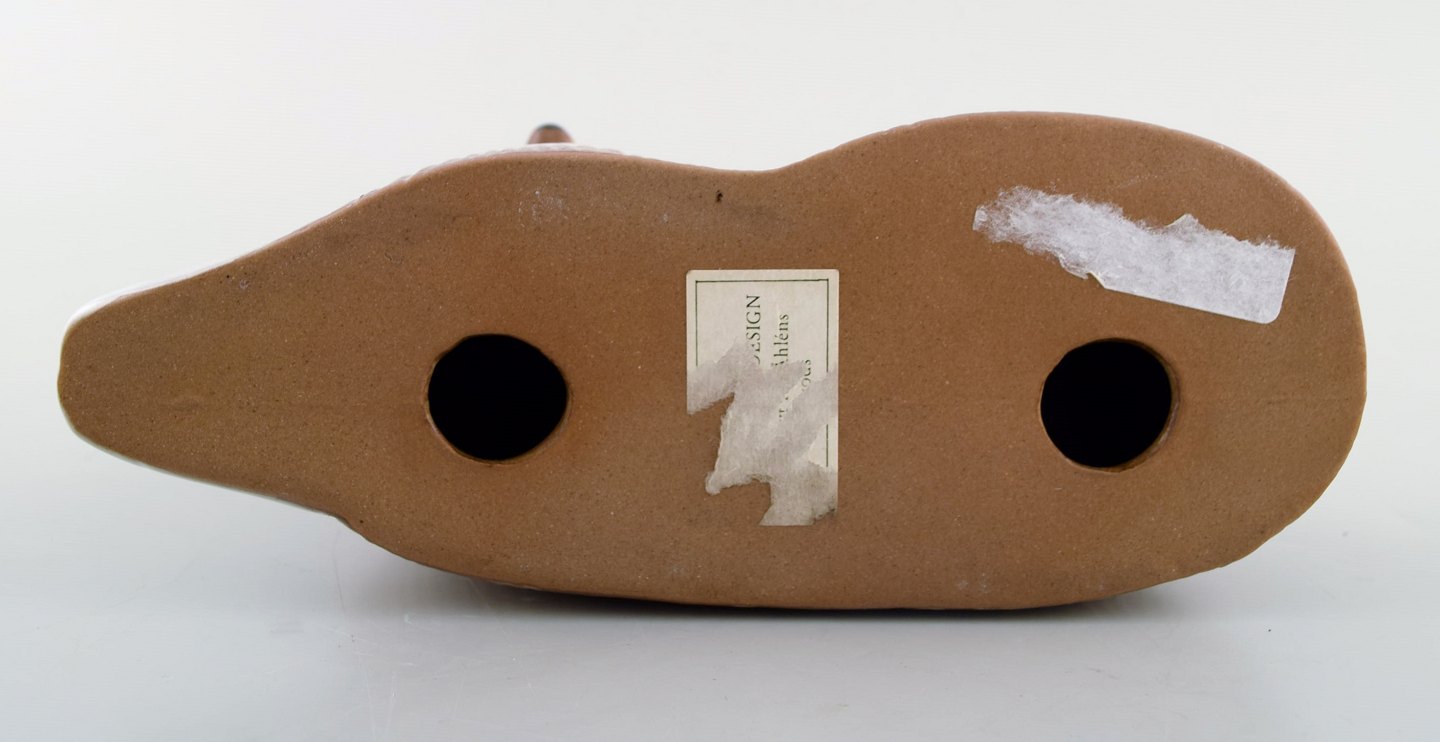 Lisa Larson for Gustavsberg. Collie i glaseret stentøj. Sent 1900-tallet. I flot stand. Stemplet. Måler: 16,5 x 8,5 cm.