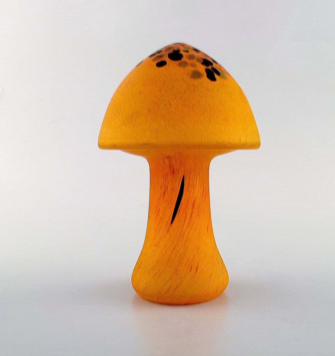 Monica Backström for Kosta Boda. Two mushrooms in colored art glass. 1980's. In very good condition. Largest measures: 15 x 13 cm.