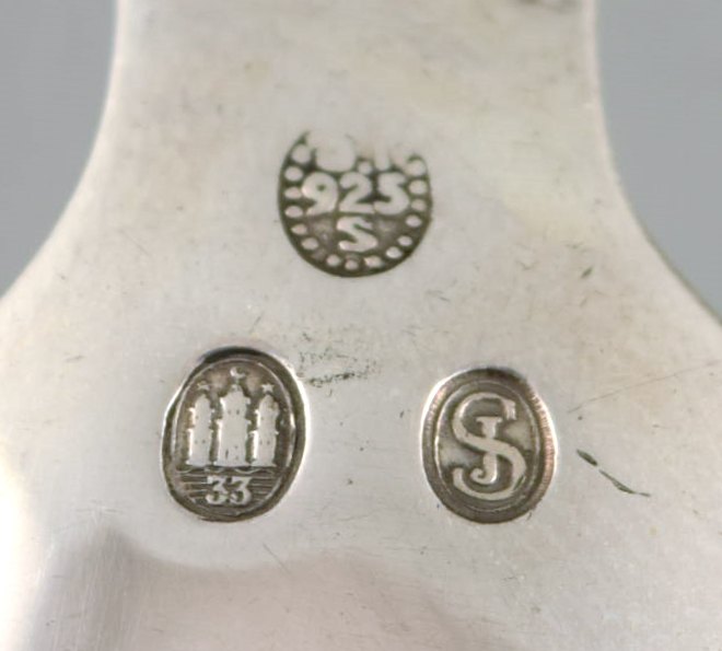 Georg Jensen Parallel/Relief. Sorbet ske i sterlingsølv. Dateret 1915-30.
