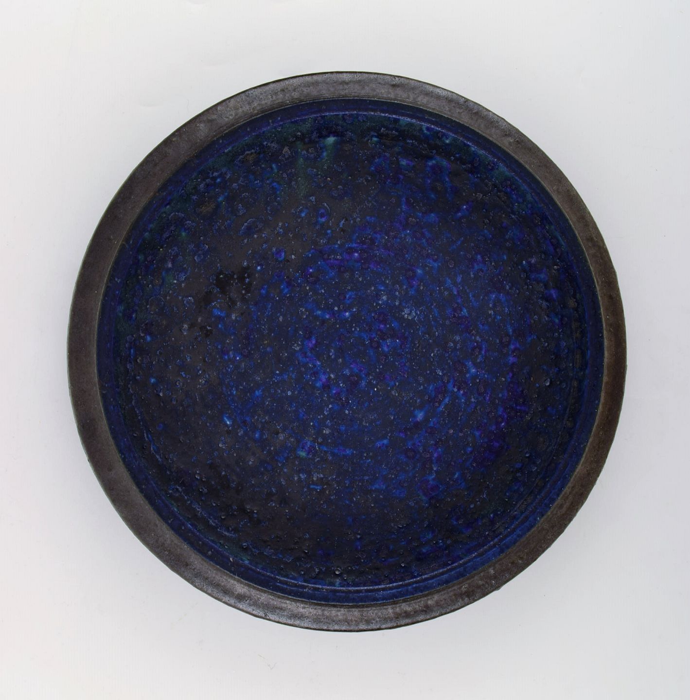 Liisa Hallamaa Larsen for Arabia. Stor unika skål i glaseret stentøj. Smuk glasur i brune og blå nuancer. Finsk design, 1960'erne. Måler: 32 x 5,8 cm. I flot stand. Signeret.