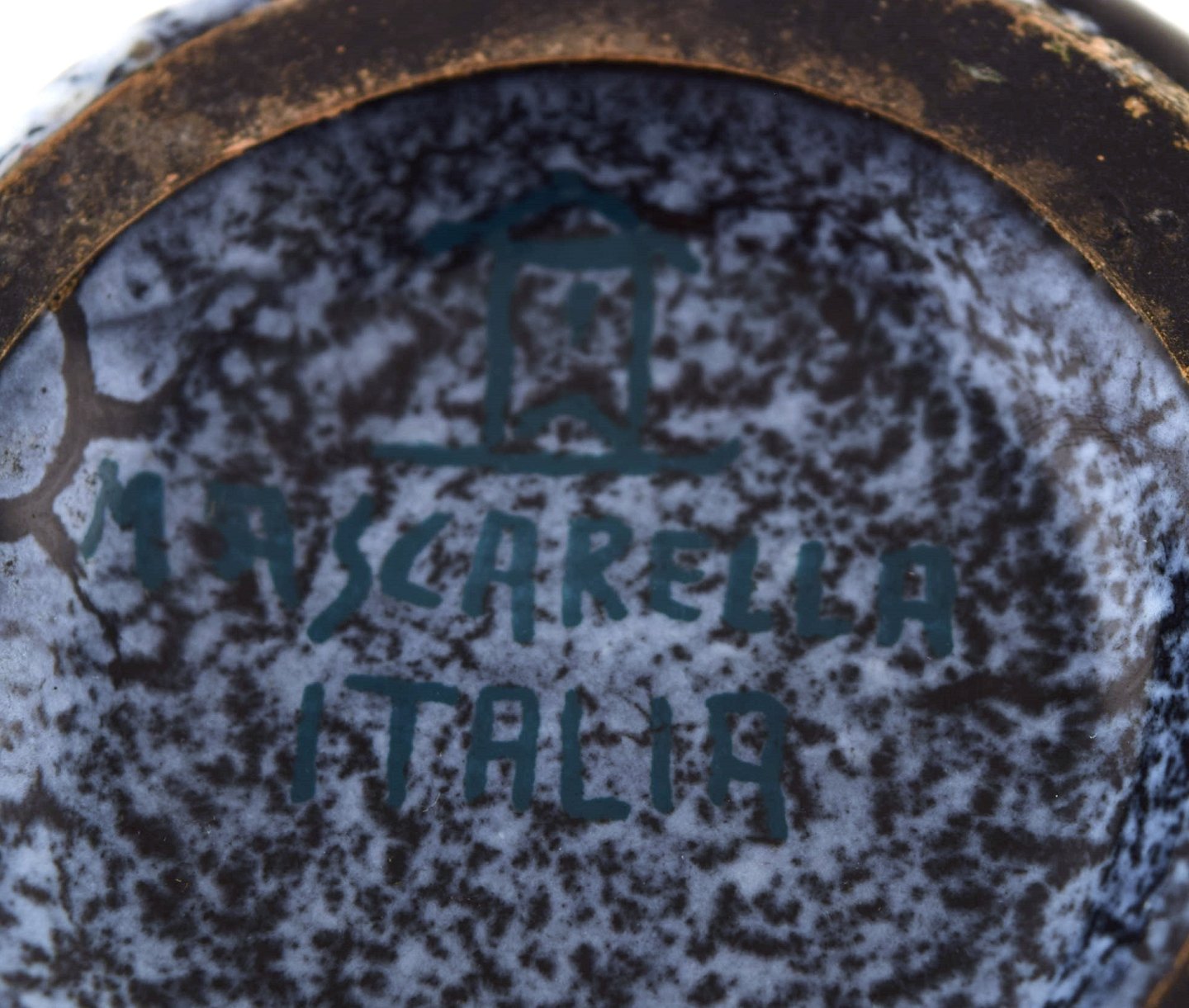 Mascarella, Italien. Vase i glaseret keramik. Smuk glasur i mørke og lyseblå nuancer. Midt 1900-tallet. I flot stand. Måler: 20,5 10,5 cm. Signeret.