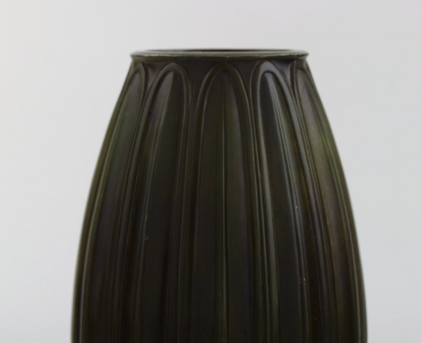 Just Andersen. Art deco vase in disko metal. 1940's. Model Number D2364.. In very good condition. Stamped. Measures: 22 x 12.5 cm.