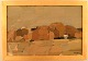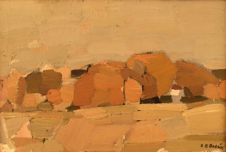 Carl-Eric Bodén (1909-2003). Modernistisk landskab. Olie på plade.