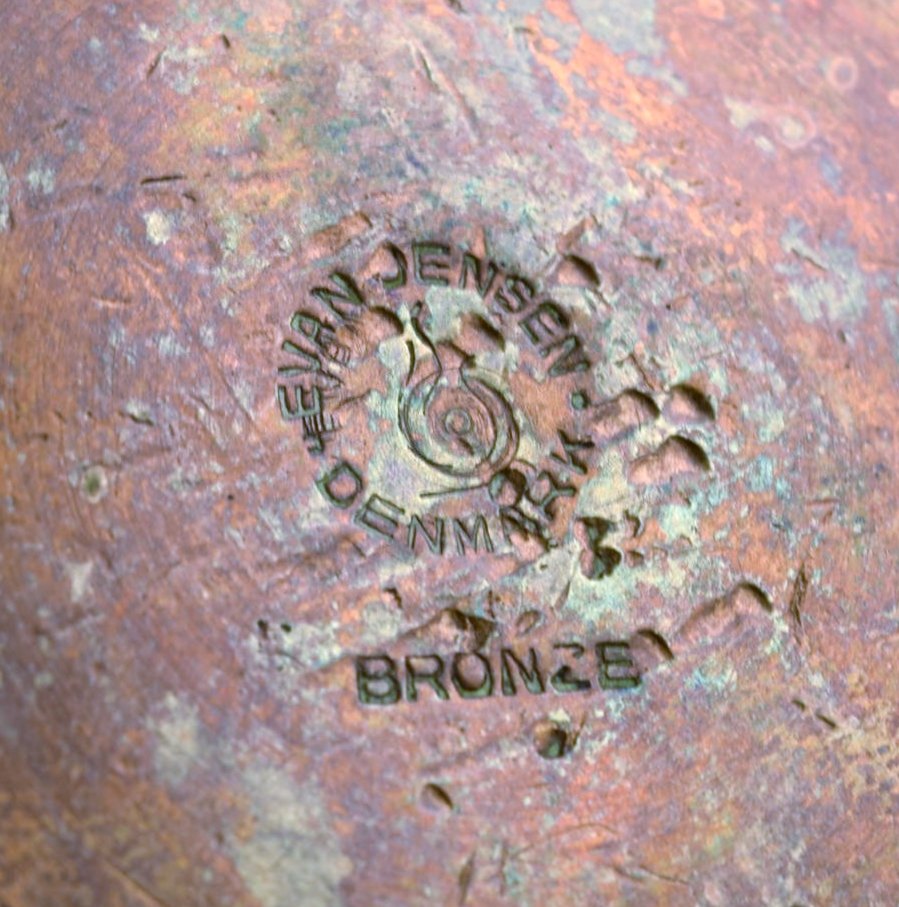 Evan Jensen, Danmark. Art deco skål i bronze med springende buk. 1940'erne. Måler: 14,2 x 2,8 cm. I flot stand. Stemplet.
