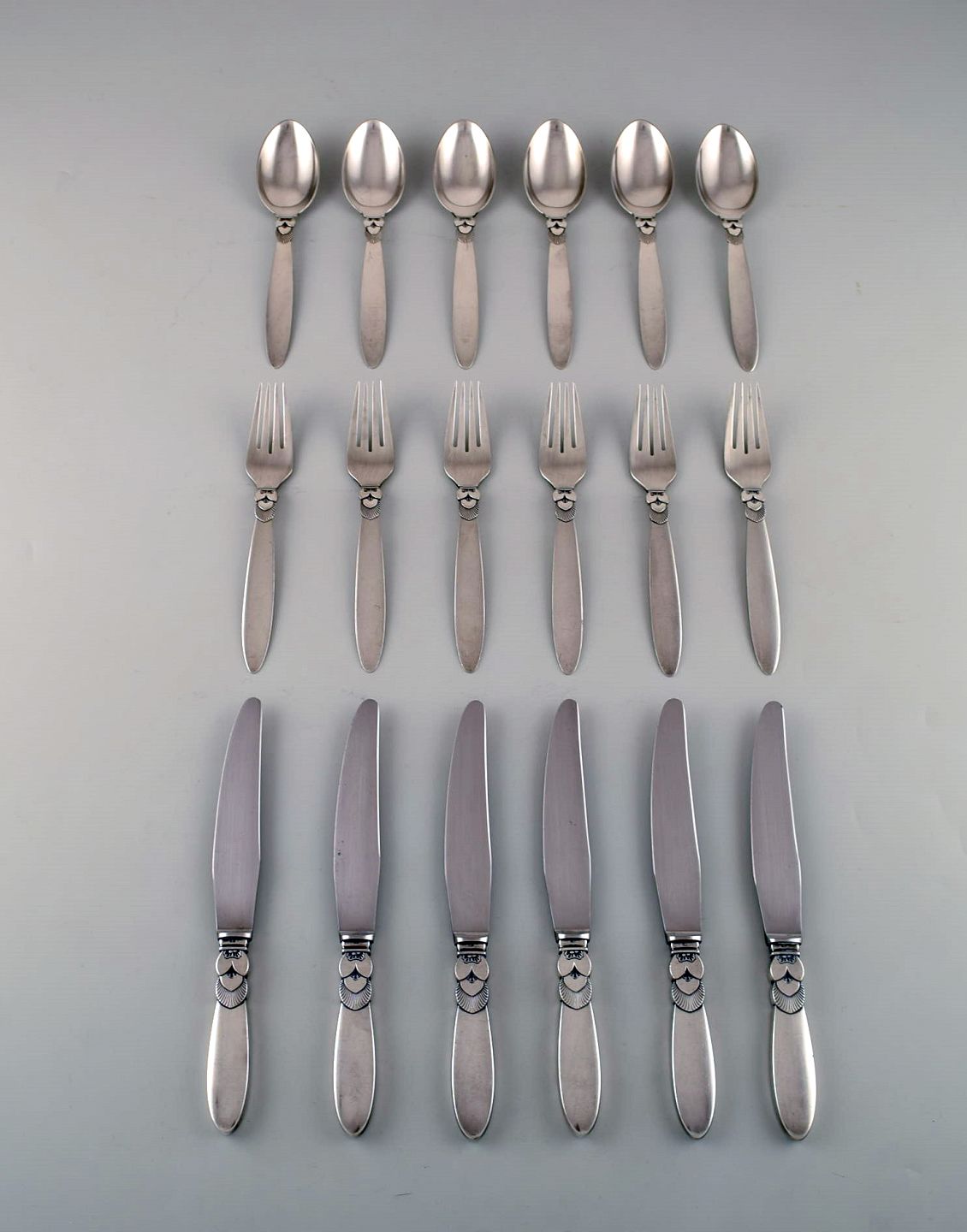 Georg Jensen "Kaktus" bestik. Komplet middagsservice til seks personer i sterlingsølv.