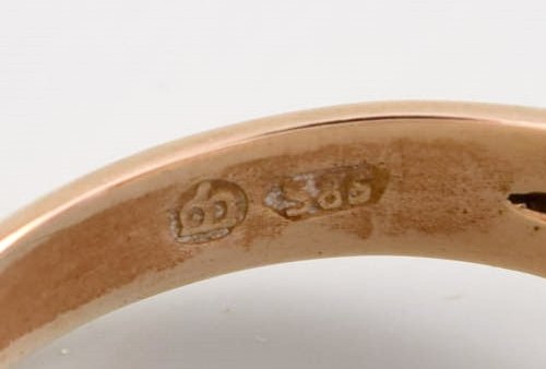 Skandinavisk guldsmed. 14 karat guldring prydet med ametyst. Midt 1900-tallet. Diameter: 17,5 mm. US size: 7.25. I flot stand. Stemplet.