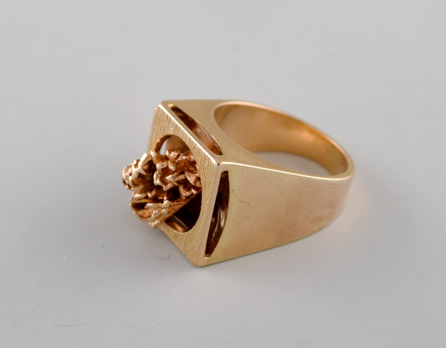 Ove Fogh Pedersen, Danmark. 14 karat modernistisk guldring. 1960/70'erne. Diameter: 16,3 mm. US size: 5.6. I flot stand. Stemplet.
