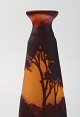 Emile Gallé, Frankrig. "Paysage" vase i mundblæst kunstglas. Motiv af landskab med solnedgang. Ca. 1900. I flot stand. Måler: 21 x 7,5 cm. Signeret: Gallé.