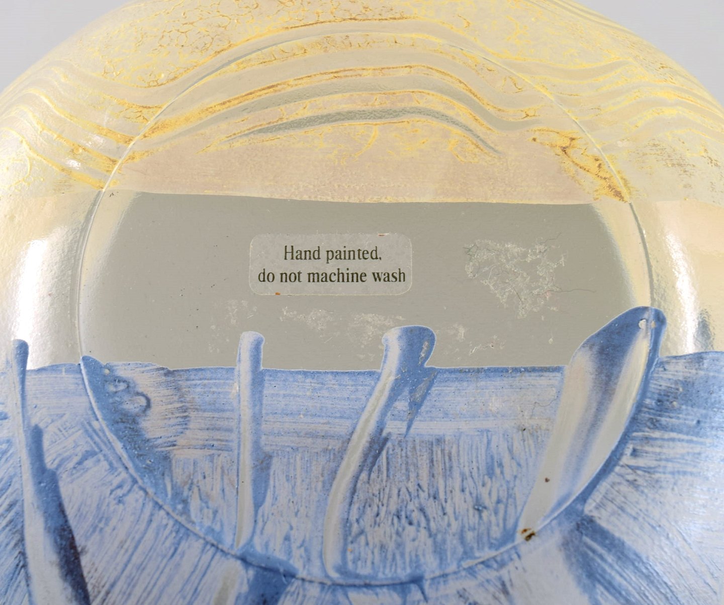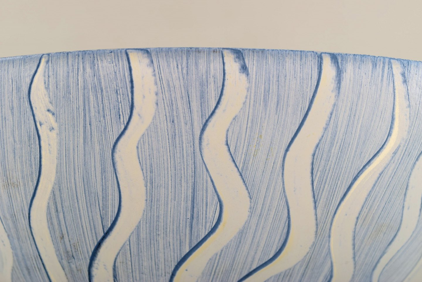 Monica Backström (1939–2020) for Kosta Boda. Stor skål i gult og blåt kunstglas med stribet design. 1980/90'erne.