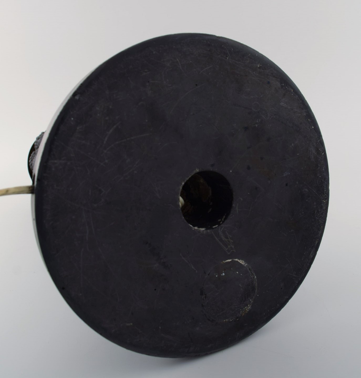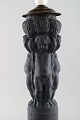 Hjorth, Bornholm. Stor lampe udført i sort terracotta dekoreret med drengebørn og drueklaser. 1880/90'erne.