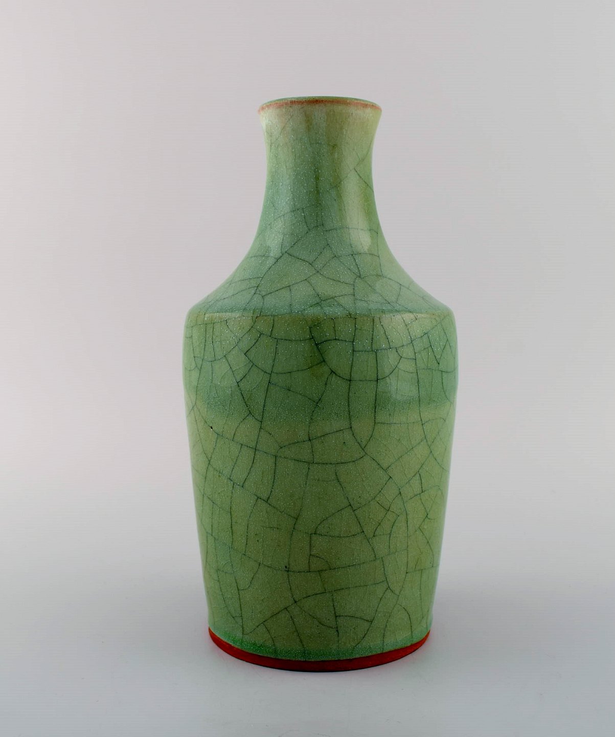 Christian Poulsen (1911-1991), Danmark. Unika vase i glaseret keramik. Smuk krakkeleret glasur i grønne nuancer. Ca. 1950.