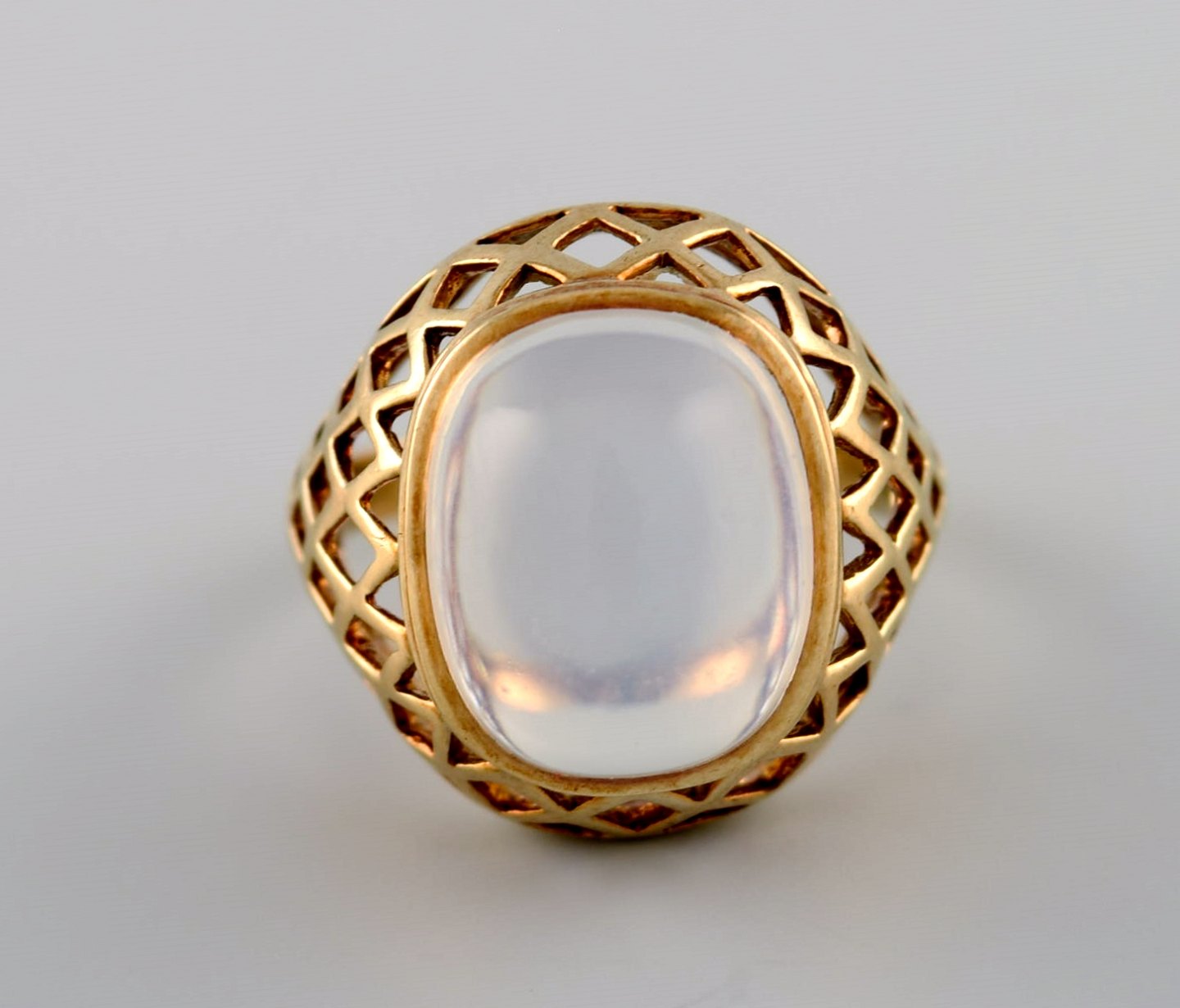 Vintage art deco ring in 14 carat gold adorned with mountain crystal. 1940's. Diameter: 17 mm. US size: 6.5 In very good condition. Stamped. In most cases we can change the size for a fee (50 USD) per ring.