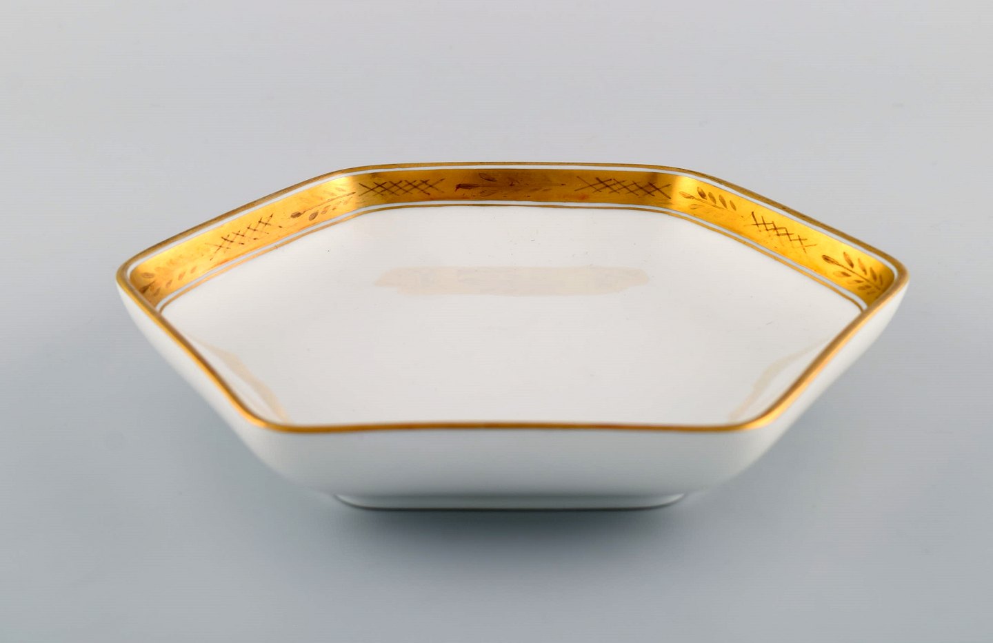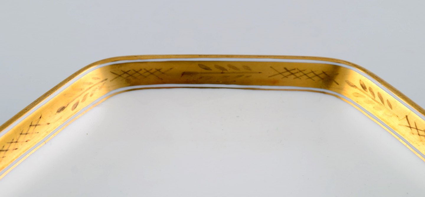 Royal Copenhagen Dagmar, Hvid. Kantet fad i porcelæn med guldkant. Modelnummer 607/9784.