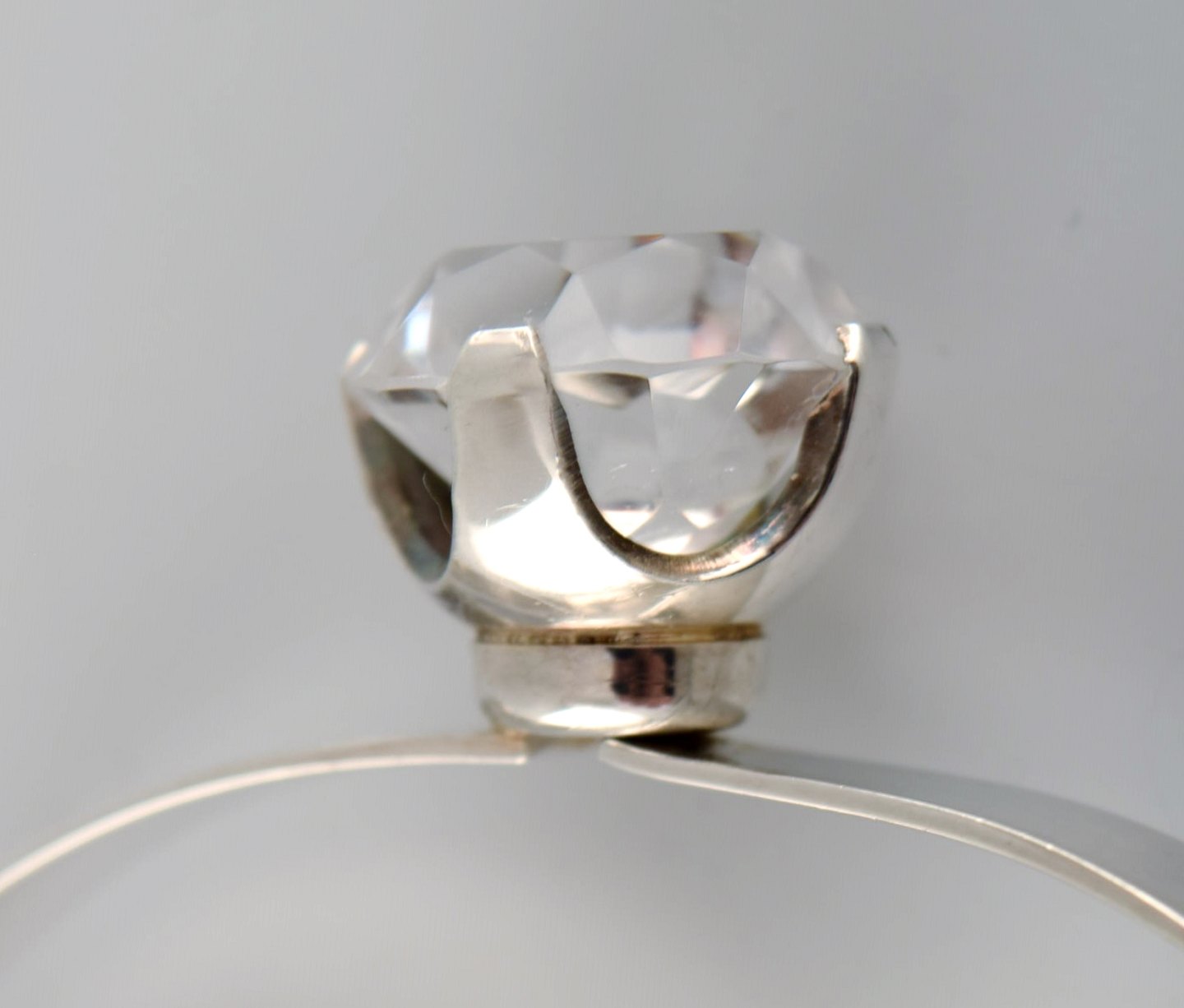 Karl Erik Palmberg, Sweden. Modernist bracelet in silver adorned with mountain crystal. Dated 1967. Diameter: 6.3 cm. Width: 1.7 cm. In very good condition. Stamped.