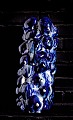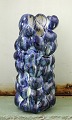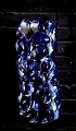Christina Muff, dansk samtidskeramiker (f. 1971). Meget høj og slank unika skulpturel vase, der åbner op til den ene side øverst. Denne vase er glaseret i et utal af blå toner, den er blevet brændt adskillige gange for at opnå denne effekt. Indeni er den cremehvid med blå glasurløbere. Denne skulptur er en del af 'Salt' serien af Christina Muff. Unika.