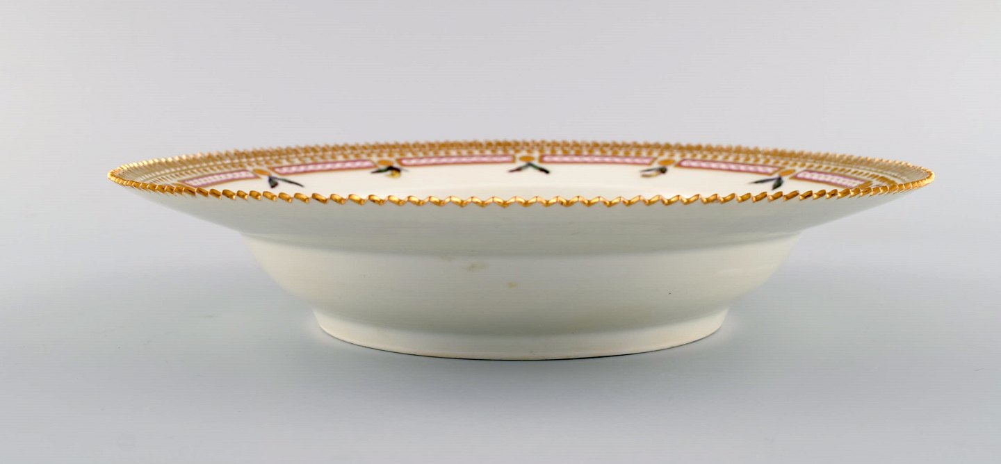 Royal Copenhagen flora danica deep plate in porcelain with hand-painted flowers and gold decoration. Early 20th century. Measures: 24.5 x 5.2 cm. In excellent condition. 1st factory quality. Stamped.