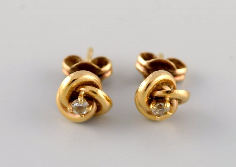 Swedish jeweler. A pair of classic ear studs in 18 carat gold adorned with semi-precious stones. Mid-20th century. Measures: 12 x 7 mm. In excellent condition. Stamped.