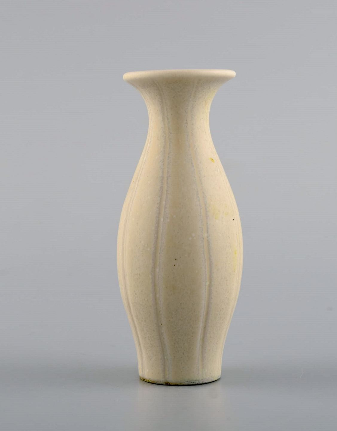 Gunnar Nylund for Rörstrand. Sjælden miniature vase i glaseret keramik. Smuk æggeskalsglasur. 1950'erne. Stemplet. Måler: 8,5 x 3,5 cm. I flot stand. 1. Sortering
