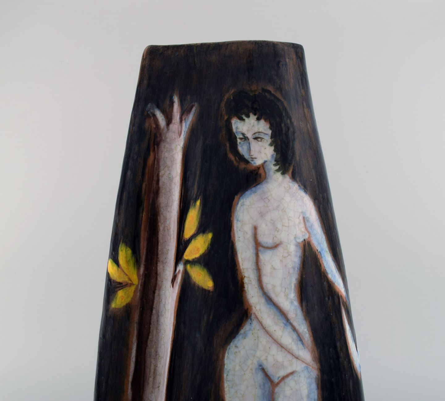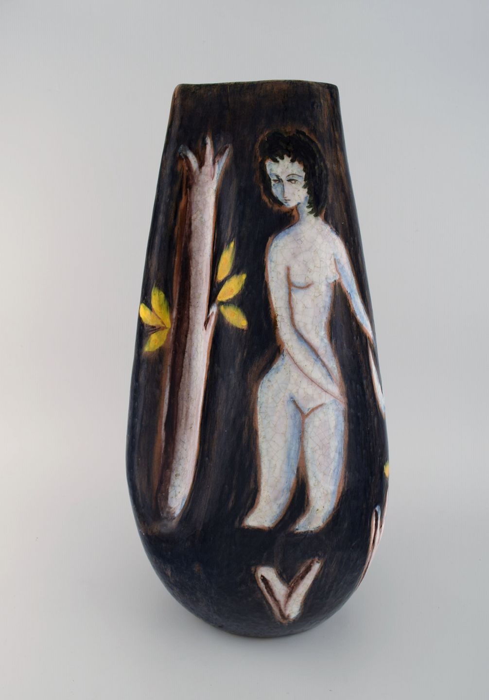 Marcello Fantoni (b.1915), Italy. Large floor vase in hand-painted glazed ceramics with naked women. 1960's. Measures: 48.5 x 27 cm. In excellent condition. Signed.
