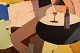 Hans Osswald (1919-1983), Swedish artist. Oil on canvas. Modernist cafe interior. Mid-20th century. The canvas measures: 89 x 79 cm. The frame measures: 3.5 cm. Signed. In excellent condition.