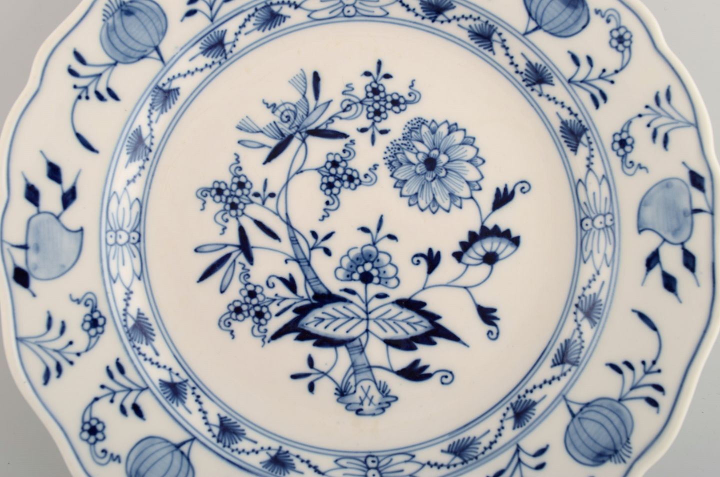Meissen "Løgmønstret" blev oprindeligt navngivet "pære" mønster. Modelleret tæt efter et mønster først produceret af kinesiske porcelænsmalere, som fremhævede granatæbler, hvilke var ukendte i Sachsen. Tallerkener og skåle produceret på Meissen fabrikken i 1740 frembragte en følelse, der tydeligvis var deres egne.