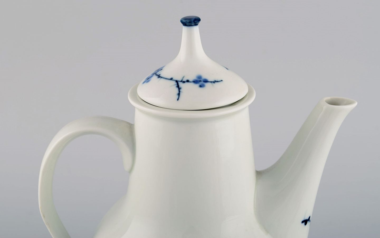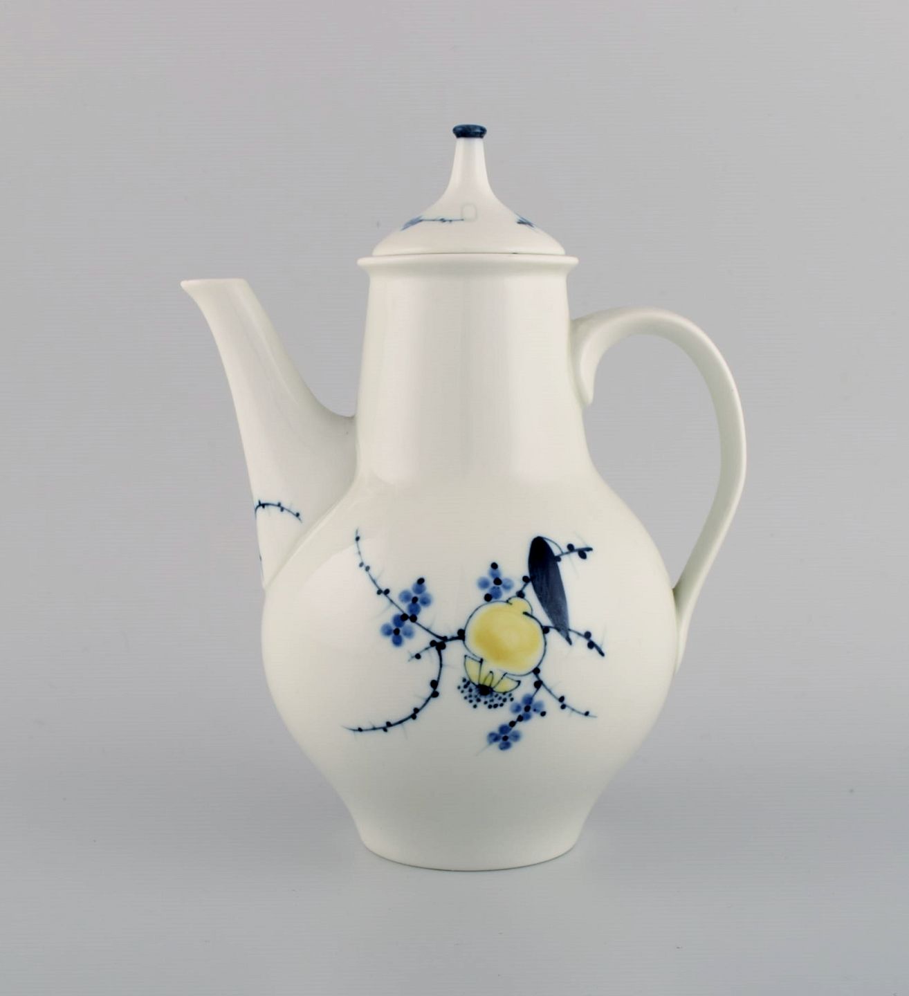 Johannes Hedegaard for Royal Copenhagen. Sjælden Rimmon kaffekande med sukker/fløde sæt i håndmalet porcelæn. Dateret 1967.