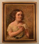 Charles James Lewis (1830–1892), England. Olie på lærred. Portræt af pige. Dateret 1854. Lærredet måler: 52 x 42 cm. Rammen måler: 5 cm. I flot stand. Signeret og dateret.