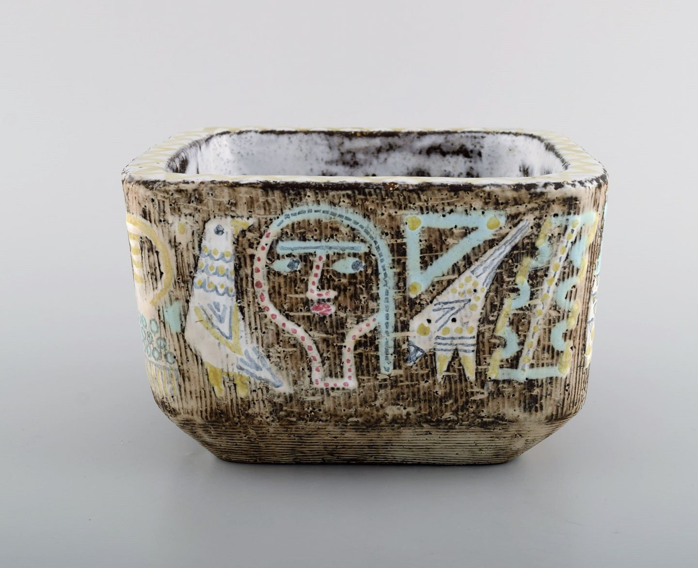 Mari Simmulson (1911-2000) for Upsala-Ekeby. Skål / urtepotte i håndmalet glaseret keramik. Midt 1900-tallet.