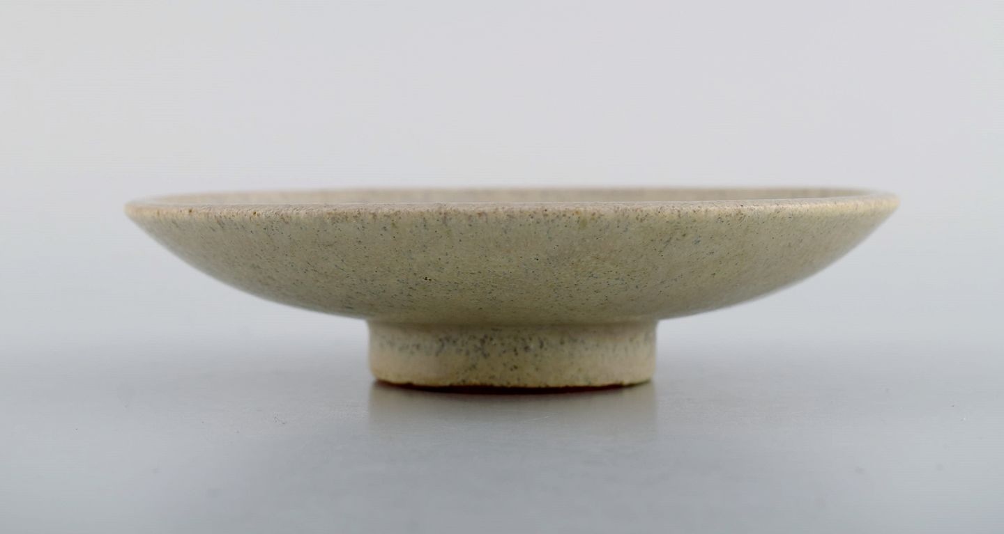 Arne Bang (1901-1983), Danmark. Rund skål på fod i glaseret keramik. Smuk glasur i sandnuancer. 1940/50'erne. Måler: 14 x 3,5 cm. I flot stand. Signeret.