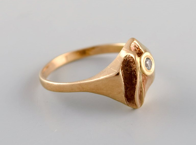 Scandinavian jeweler. Modernist ring in 14 carat gold adorned with brilliant. Mid-20th century.