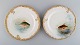 Seks antikke Pirkenhammer middagstallerkener i porcelæn med håndmalede fisk og gulddekoration. Høj kvalitet, tidligt 1900-tallet. Diameter: 24,5 cm. I flot stand. Stemplet.