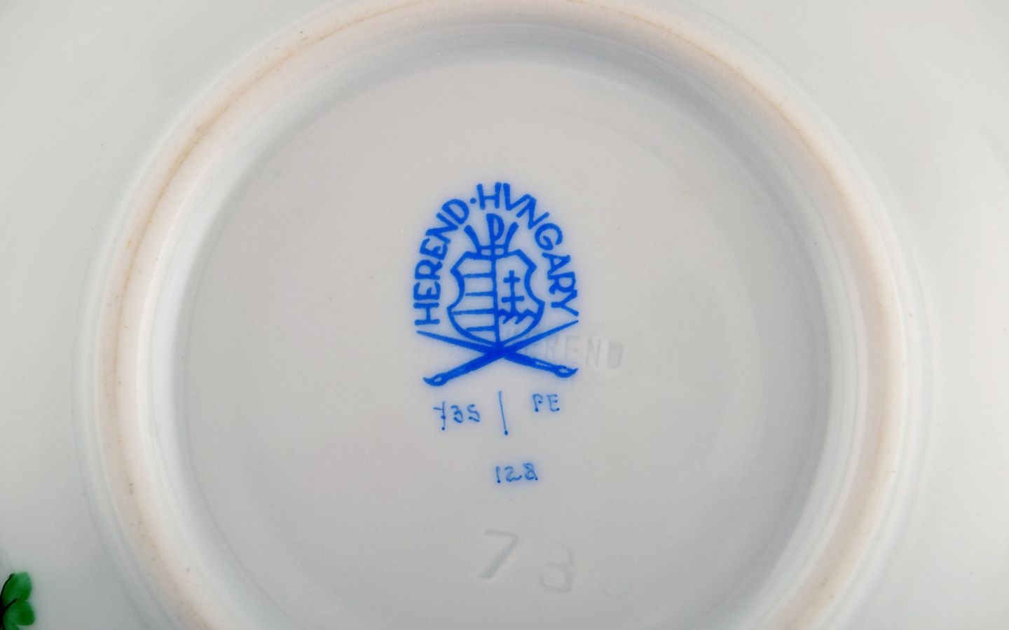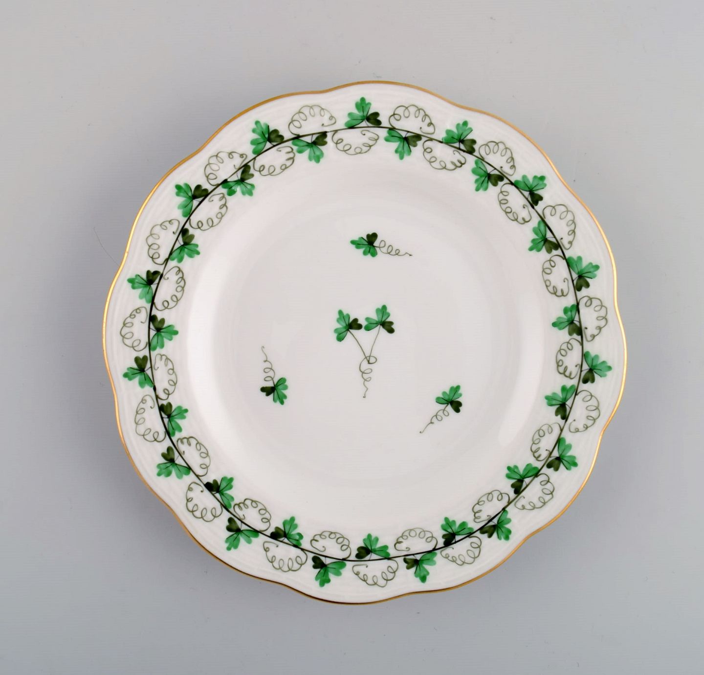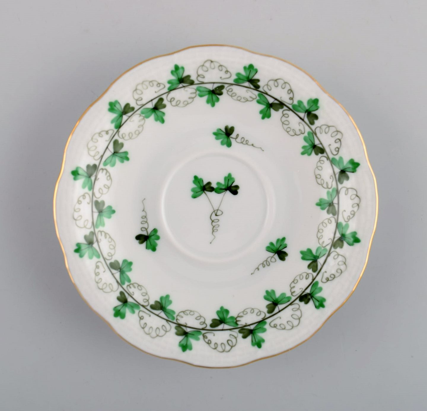 Herend Grøn Trekløver egoist kaffeservice i håndmalet porcelæn med guldkant. Midt 1900-tallet.