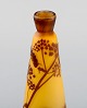 Antik Emile Gallé vase i gult kunstglas med brunt overfang udskåret i form af grene med bladværk. Sjælden model. Tidligt 1900-tallet. Måler: 17 x 5,6 cm. I flot stand. Signeret.