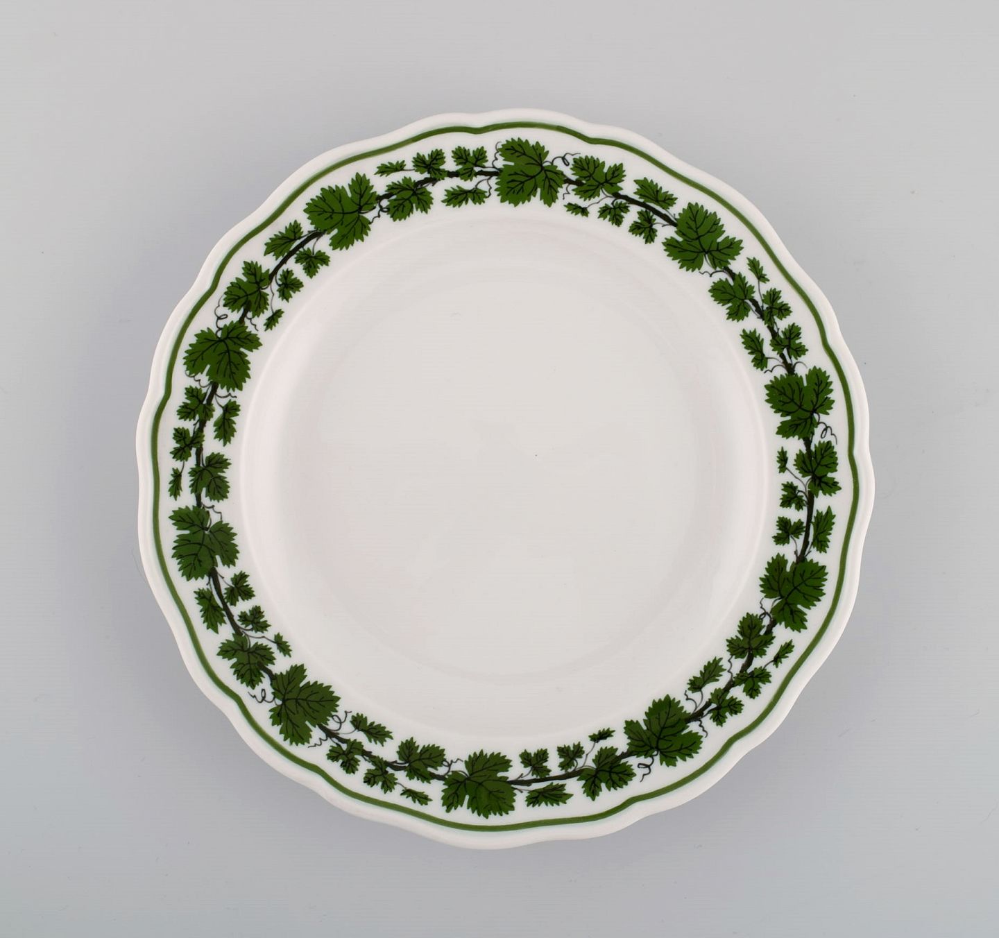 Ten Meissen Green Ivy Vine Leaf plates in hand-painted porcelain. 1940s.
