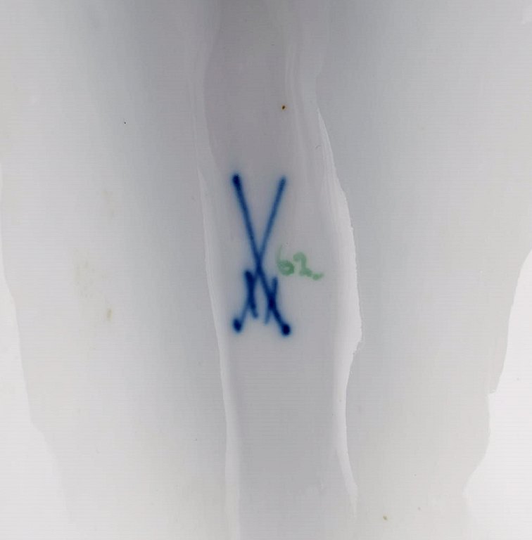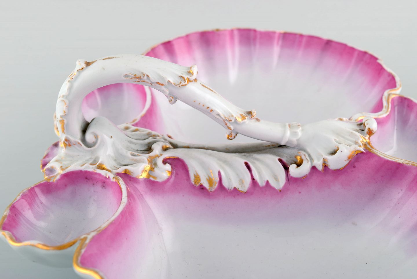 Antikt Meissen caberetfad med hank i håndmalet porcelæn med lyserød og gulddekoration. Sent 1800-tallet. Måler: 37 x 26,5 x 11,5 cm. I flot stand. Stemplet. 1. Sortering.