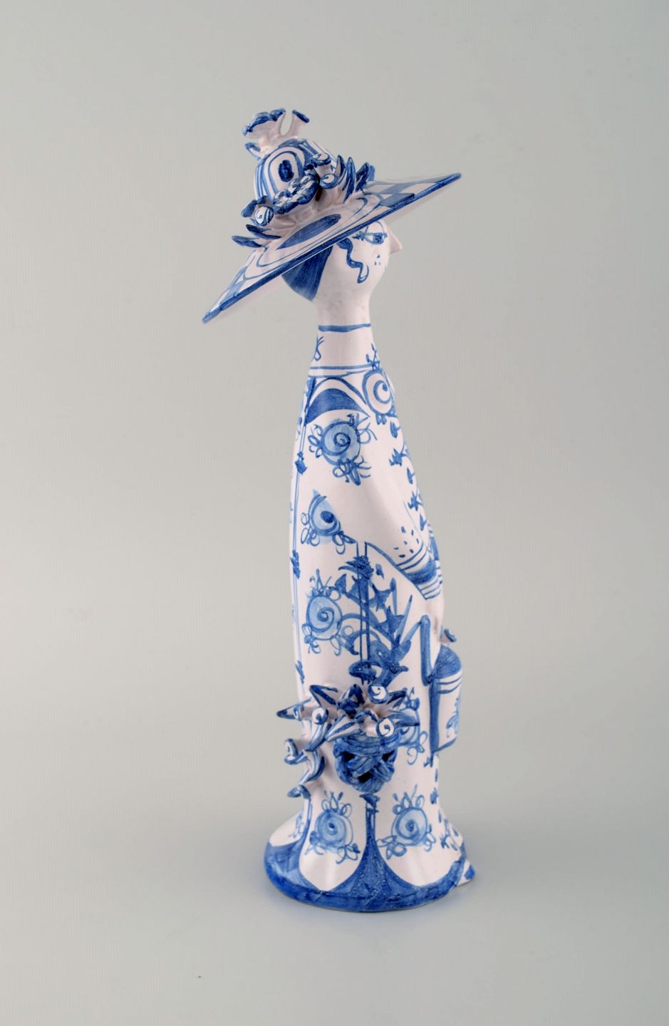 Bjørn Wiinblad unique ceramic figure. "Summer" in blue "Seasons". Signed and dated. 1983. Measures: 32 x 12 cm. In perfect condition. All 4 figures from the "Seasons" in stock.