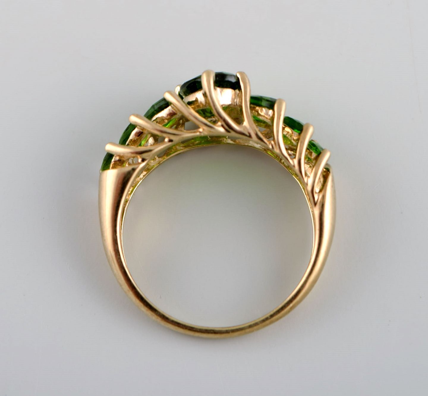Skandinavisk guldsmed. Vintage alliancering i 8 karat guld prydet med grønne halvædelsten. Midt 1900-tallet.