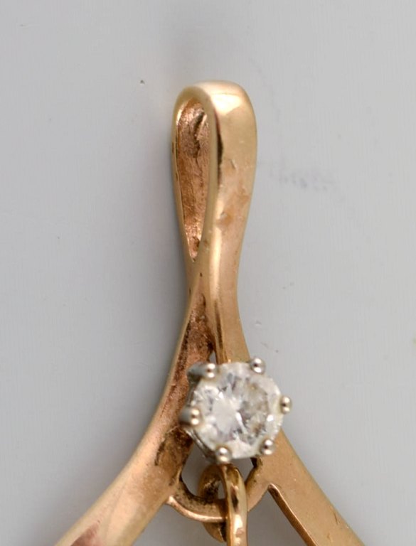 Skandinavisk guldsmed. Klassisk vedhæng i 14 karat guld med kulturperle. Midt 1900-tallet. Måler: 30 x 18 mm. I flot stand. Stemplet.
