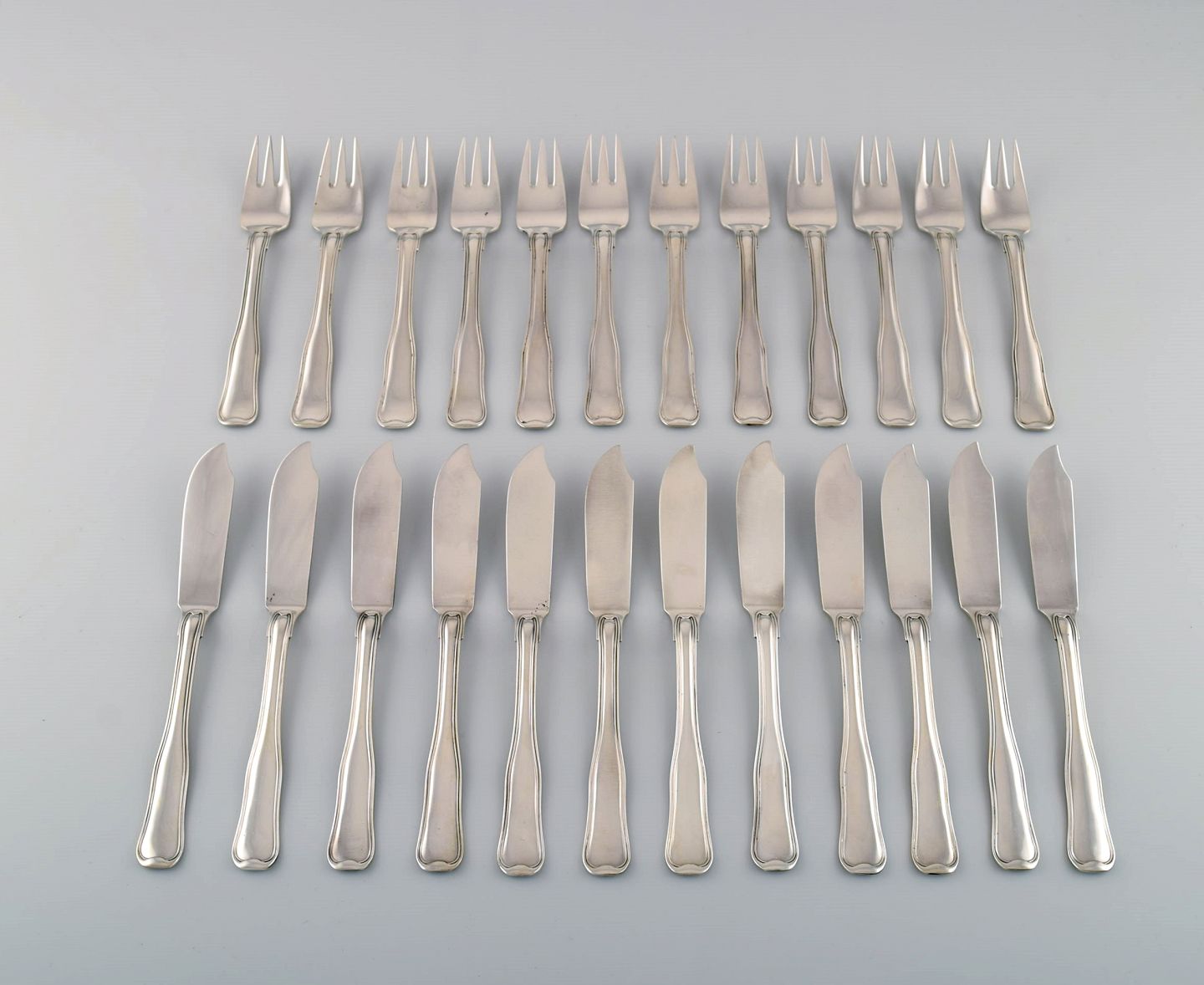 Complete Georg Jensen Old Danish fish service for twelve people in all sterling silver.