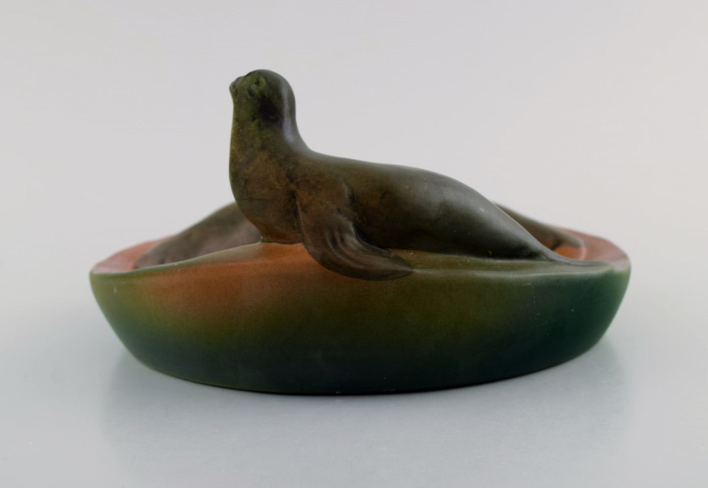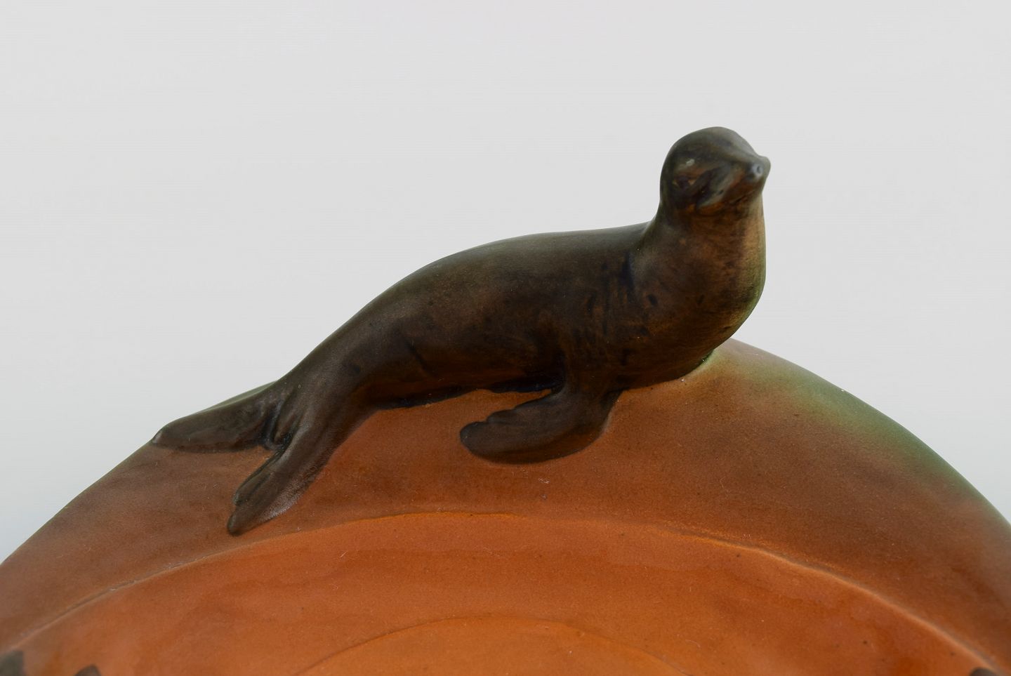 Ipsens enke, Danmark. Fad med søløver i håndmalet glaseret keramik. 1930'erne. Modelnummer 143.