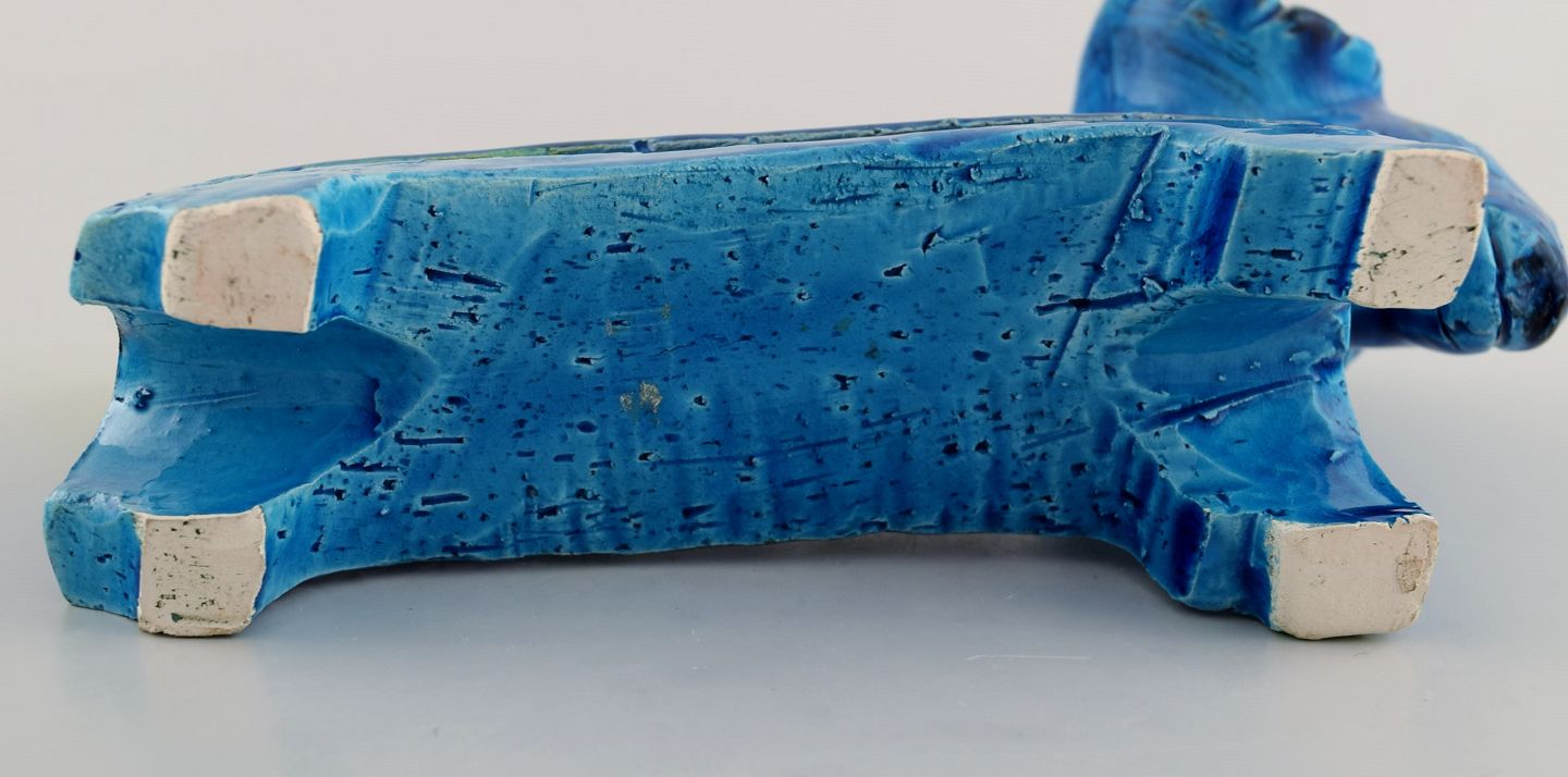 Aldo Londi for Bitossi. Vædder i Rimini-blå glaseret keramik med geometriske mønstre. 1960'erne. Måler: 18 x 11,5 cm. I flot stand.