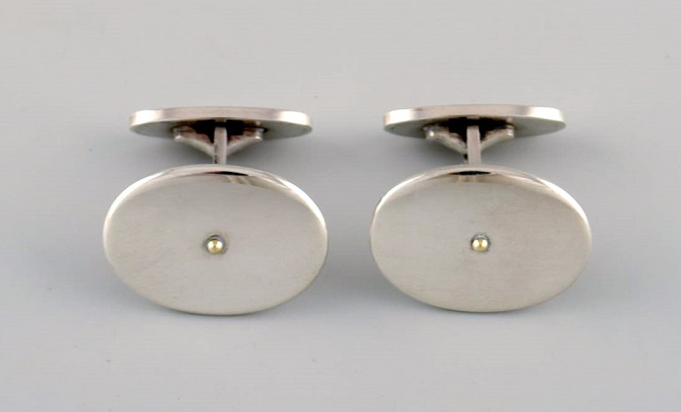 Et par modernistiske Georg Jensen manchetknapper i sterlingsølv og guld. Modelnummer 200. Midt 1900-tallet. Måler: 22 x 16 mm. I flot stand. Stemplet.