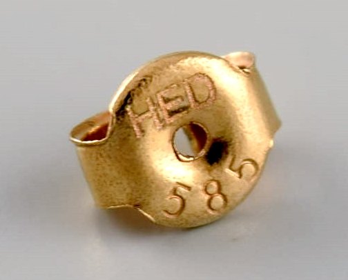 Dansk guldsmed. Et par ørestikker i 14 karat guld prydet med lyse diamanter. Sent 1900-tallet.